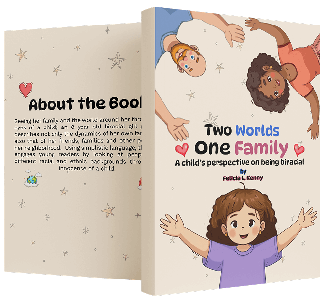 “Two Worlds, One Family” is written in easy language for young readers. It talks about being biracial through kindness and innocence. The story helps children, and parents too, see how love matters more than skin color or background.